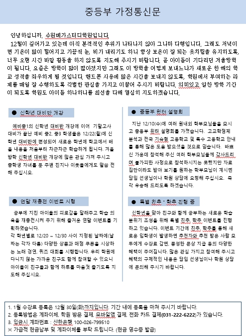 2025년 중등부 12월 소식지(가정통신문)
