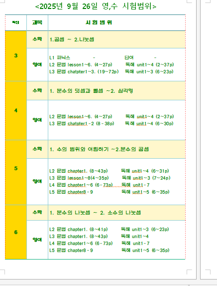 9월26일 영어,수학