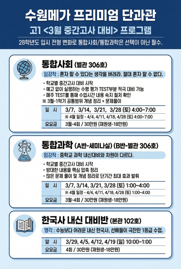 HOME > 단과반 > 내신 프로그램