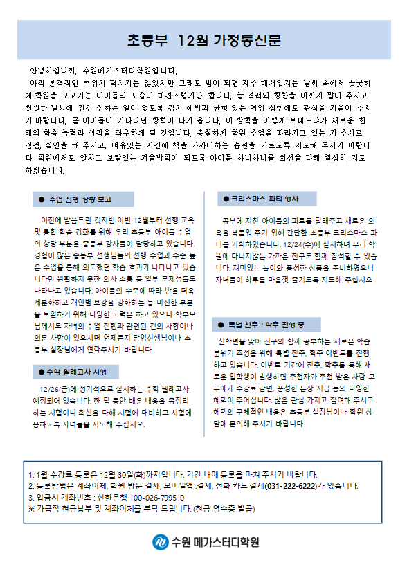 초등 [초등] 12월 가정통신문