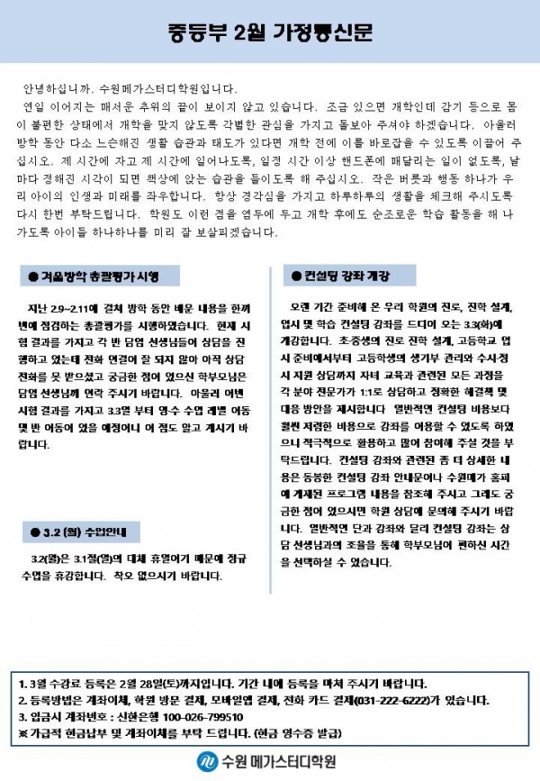 중등 [중등] 2월 가정통신문