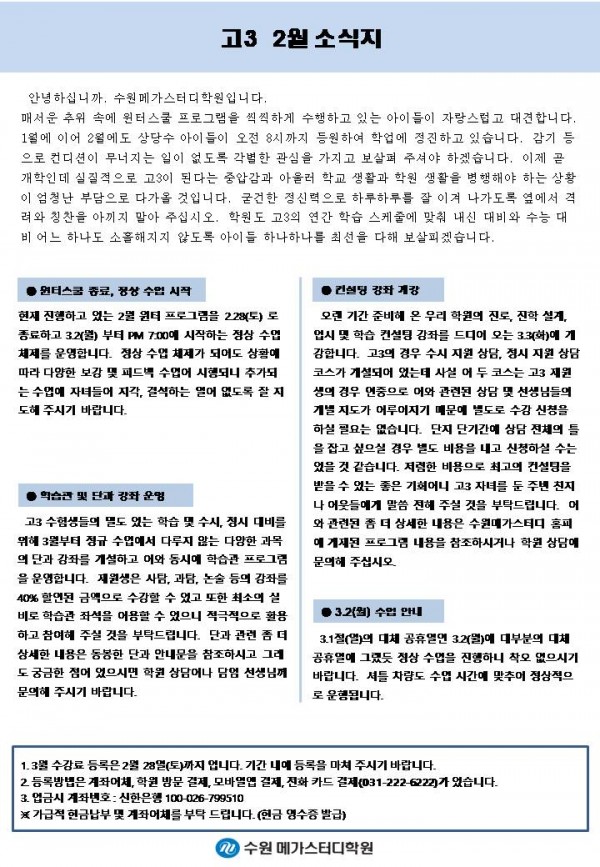 고등 [고3] 2월 가정통신문
