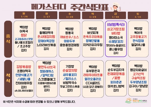 1월 4주차 식단표(1/26~1/31)